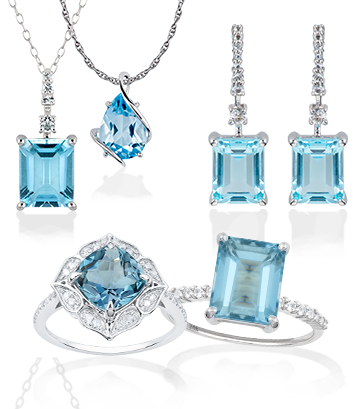10k White Gold Emerald-Cut Blue Topaz and White Topaz Ring