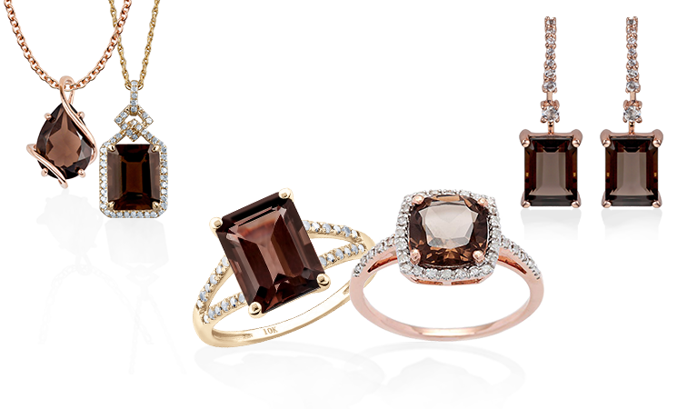 10k Rose Gold Genuine Round Smoky Quartz Pendant Necklace